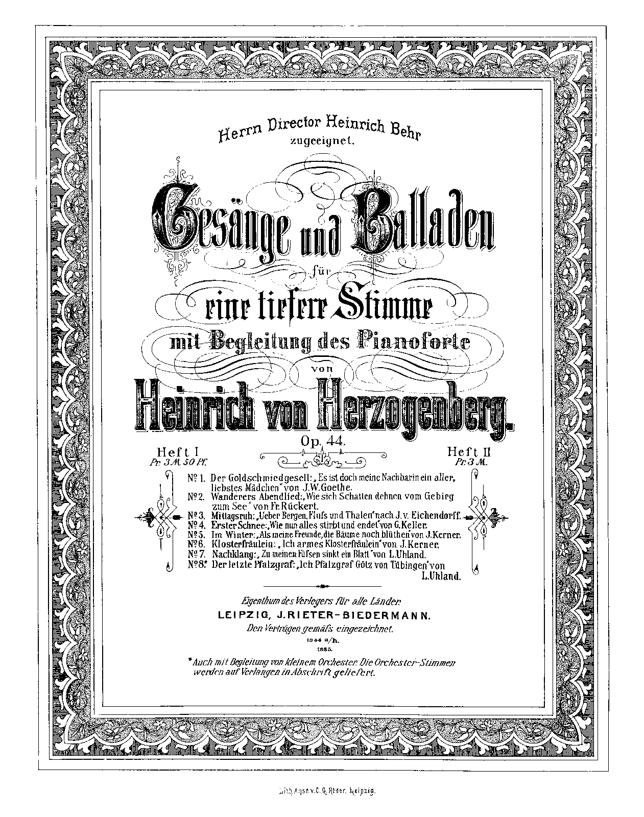 | First Publication. | 1885 – Leipzig: J. Rieter-Biedermann |