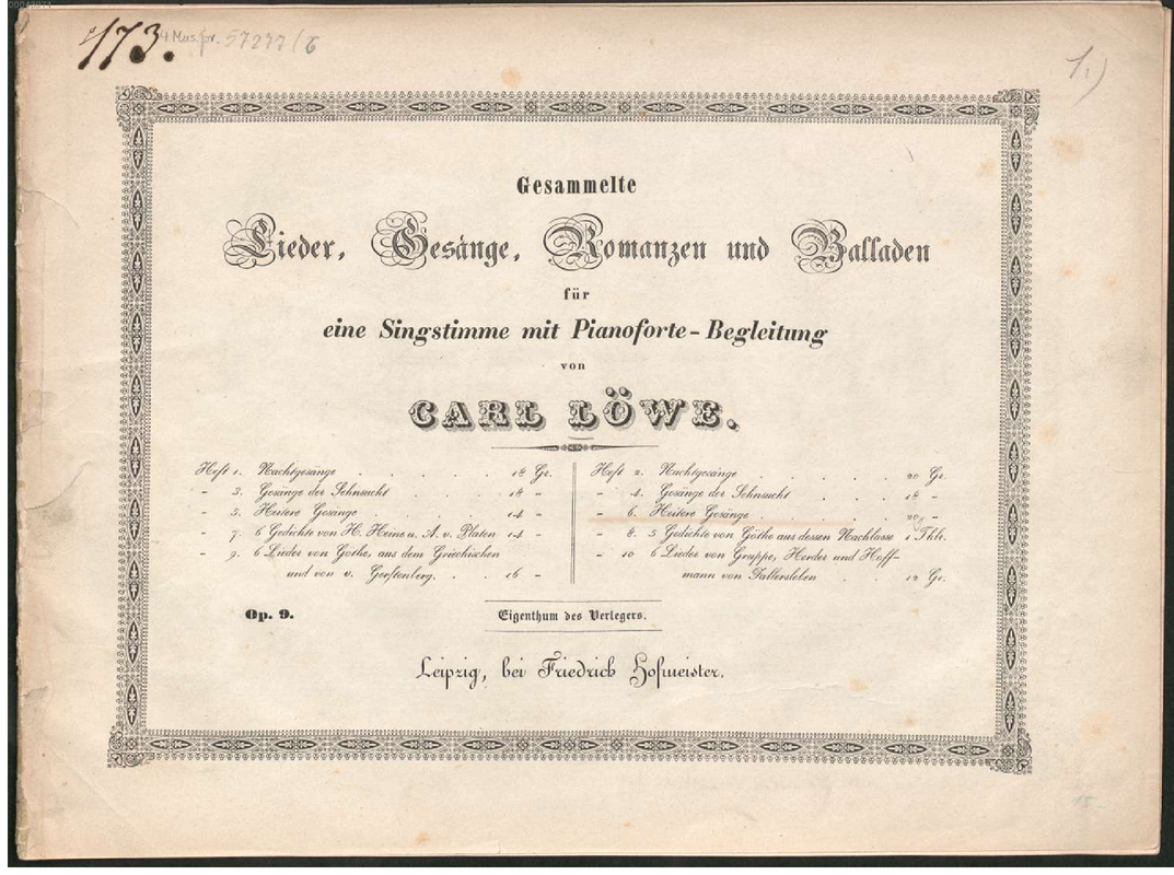 Gesamtausgabe der Balladen, Legenden, Lieder und Gesänge, Vol.8 Leipzig: Breitkopf & Härtel, 1900. Plate V.A. 1808.