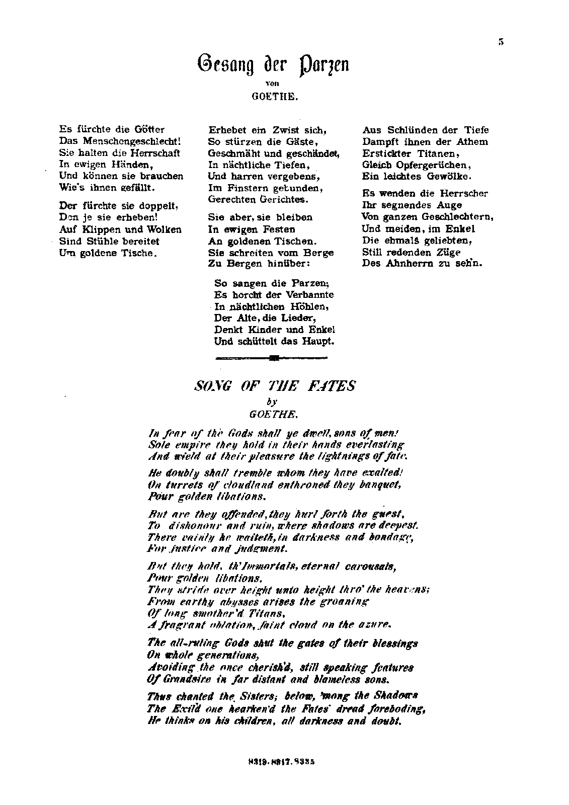 | Name Translations | Песнь Парок; 運命の女神の歌 |