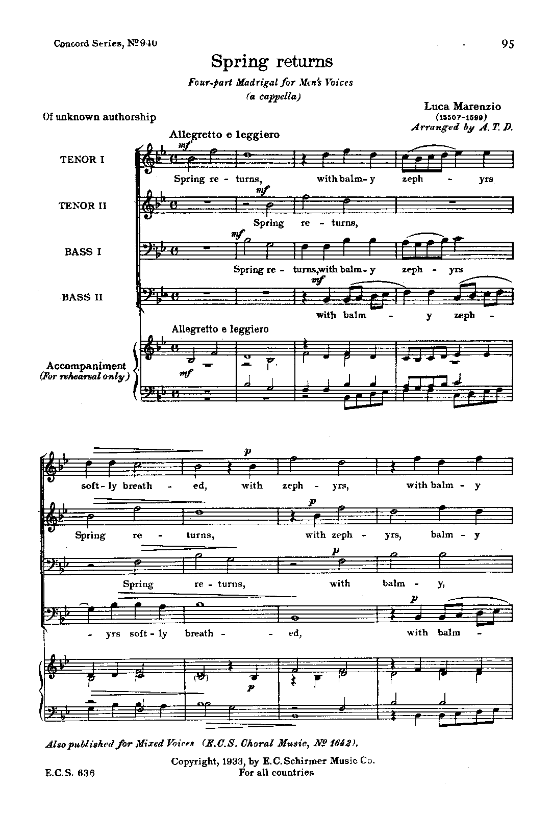 | Genre Categories | Madrigals; For 5 voices; For unaccompanied voices; |