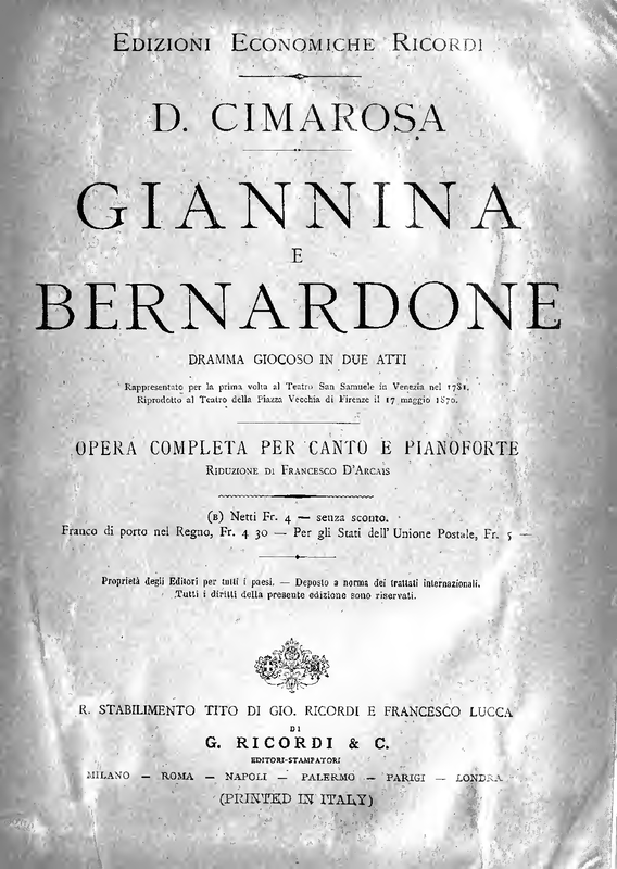 | Genre Categories | Dramma giocoso; Theatrical Works; Operas; |