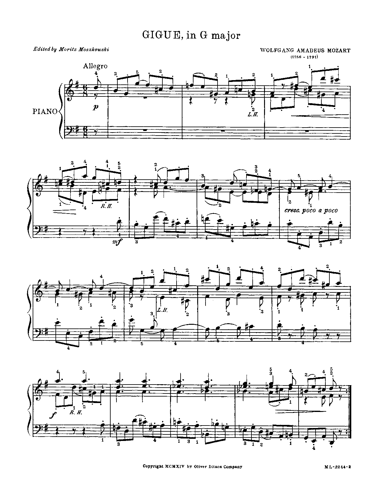 Boston: Oliver Ditson Co., 1914. Plate ML-2244.