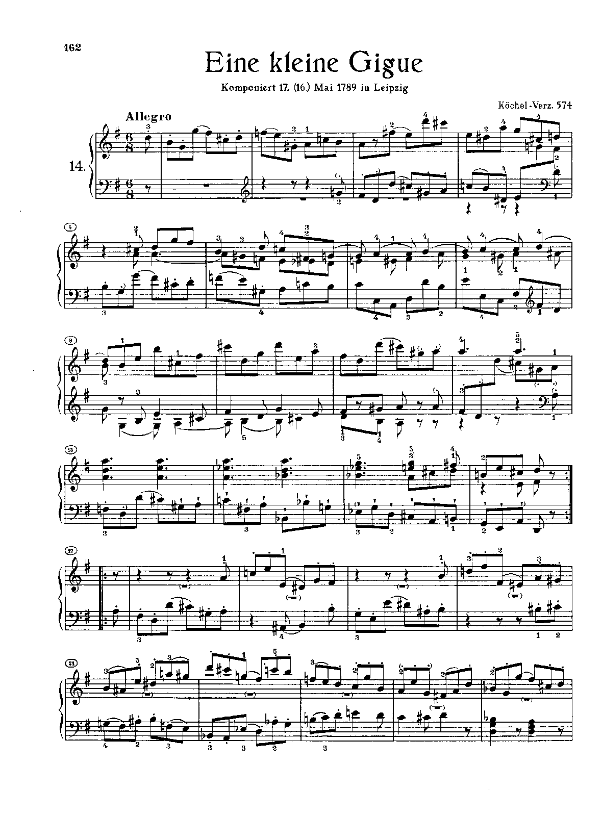 Name Aliases Giga en sol mayor; KV 574; Giga en sol mayor, KV 574; Pequeña giga en sol mayor para teclado; Kleine Gigue in G major