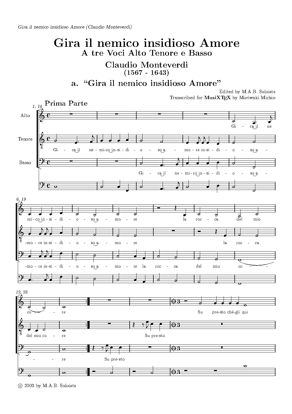 | Genre Categories | Madrigals; For 3 voices, continuo; For voices with continuo; |