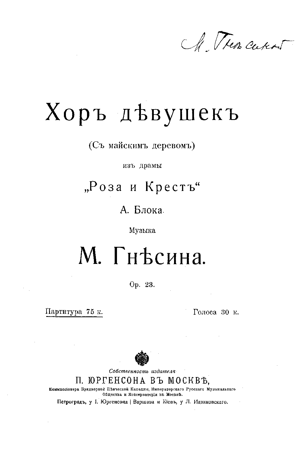| Alternative. Title | Хор девушек "С майским деревом" из драмы "Роза и Крест" |