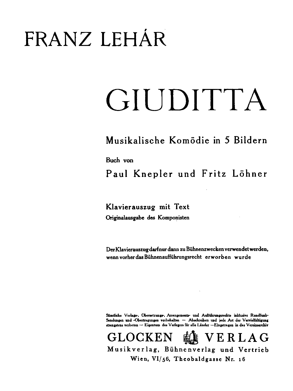 Publisher. Info. Vienna: W. Karczag, 1933. Plate W.K. 2039.