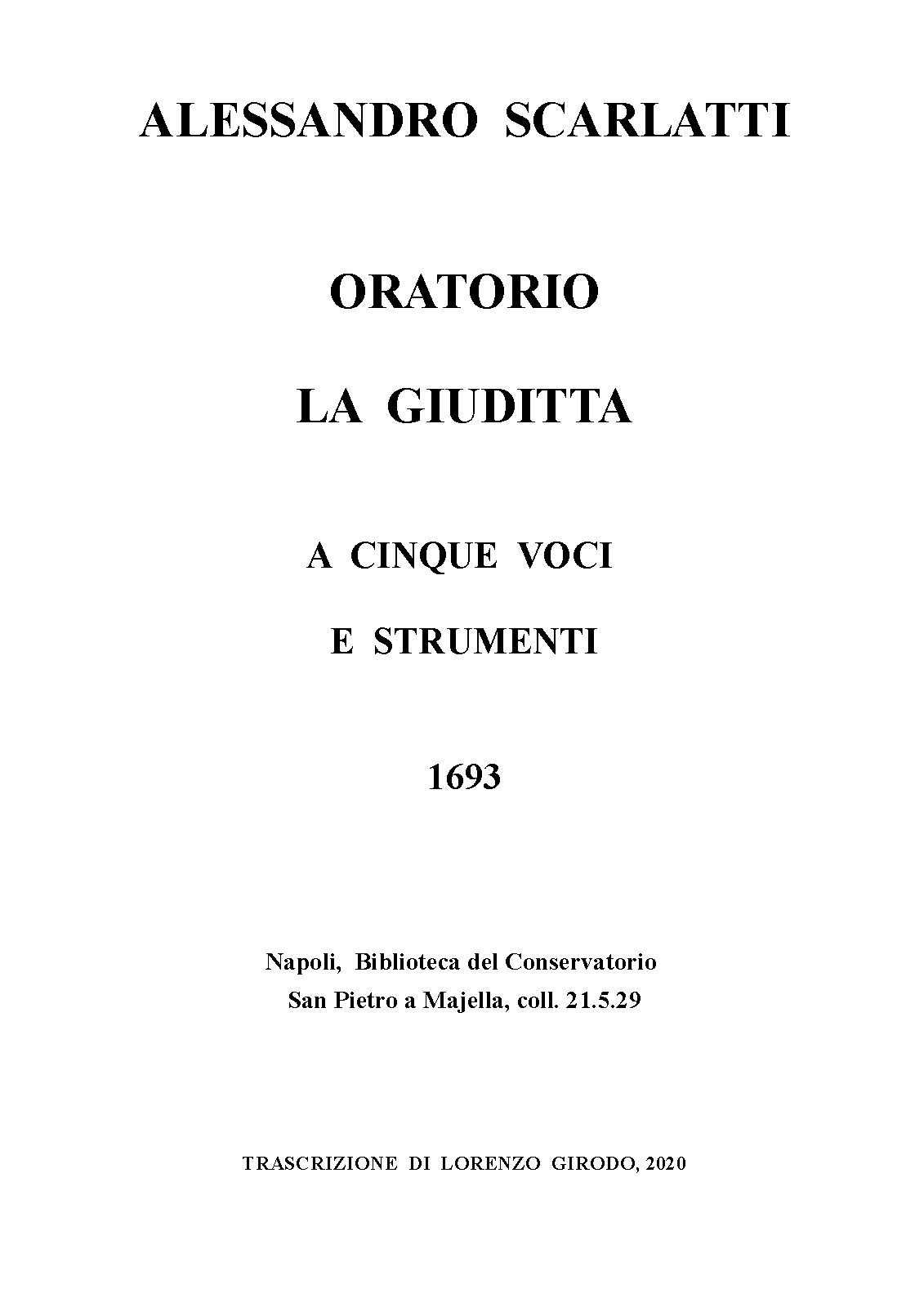 | Alternative. Title | Oratorio a cinque voci con stromenti |