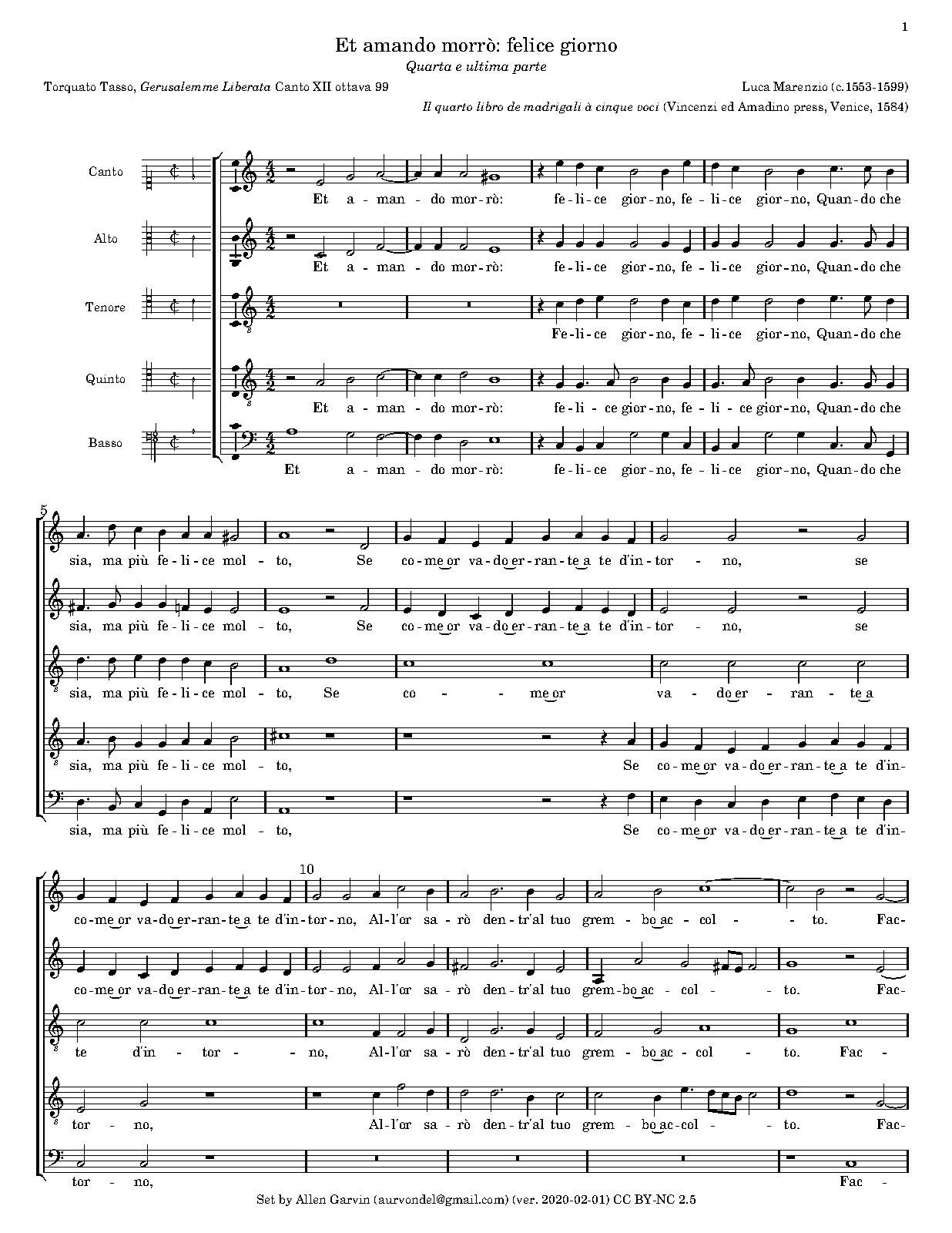 | First Publication | 1584 in Il quarto libro de madrigali a cinque voci |