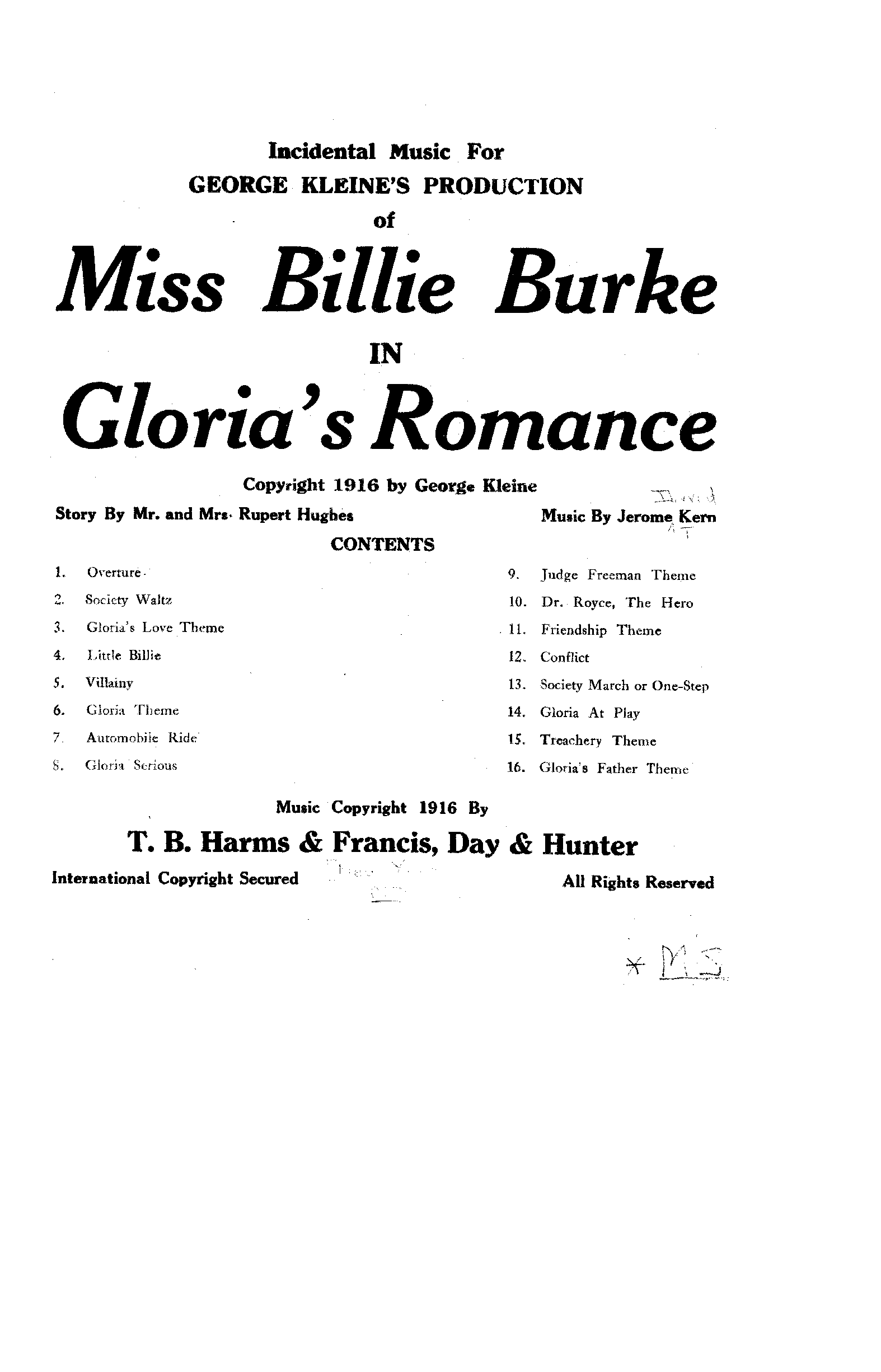 | Extra Information | Incidental music for the silent film "Gloria's Romance", a serial (now lost) |