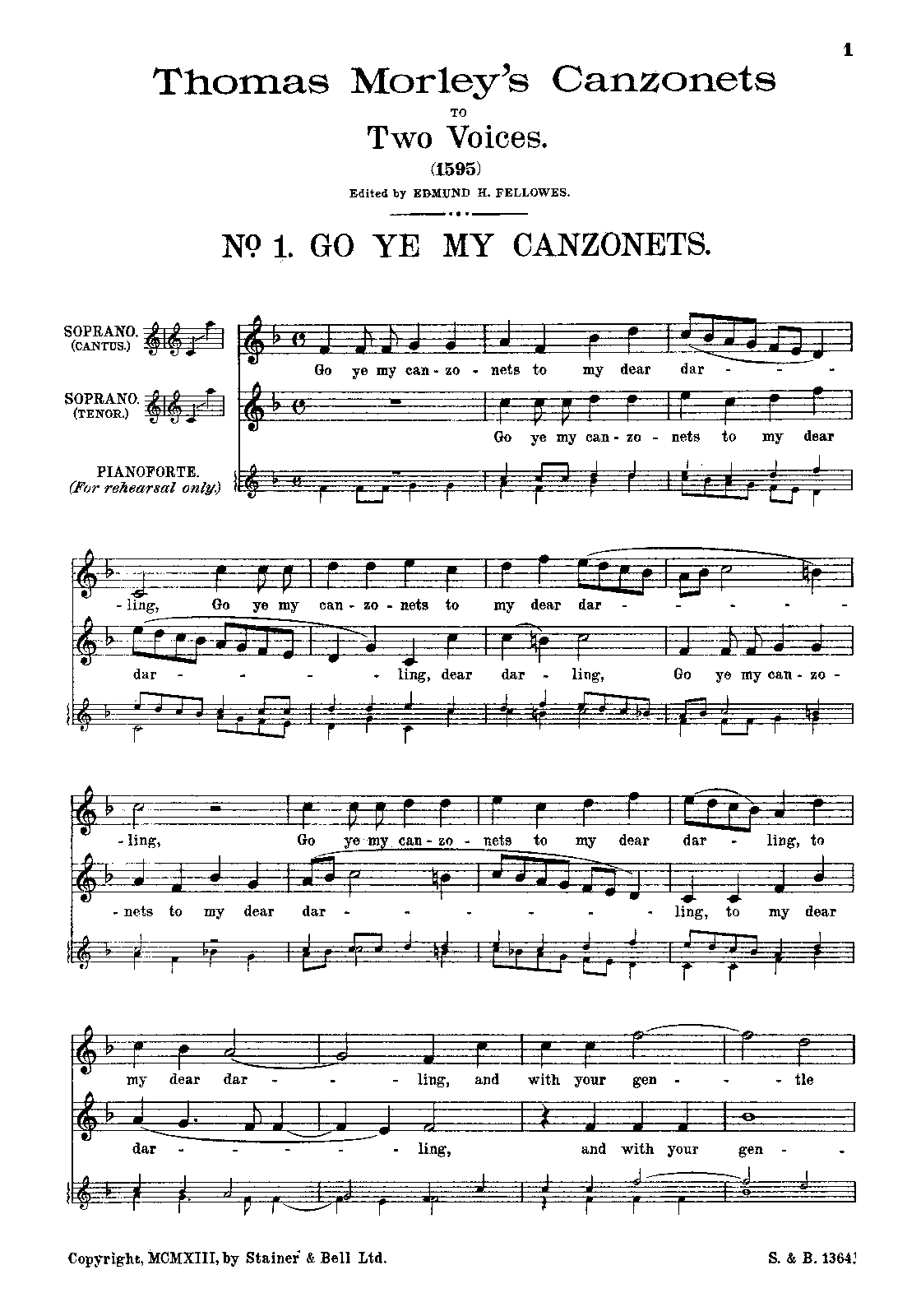 | First Publication. | 1595 in Canzonets to 2 Voices (No.1) |
