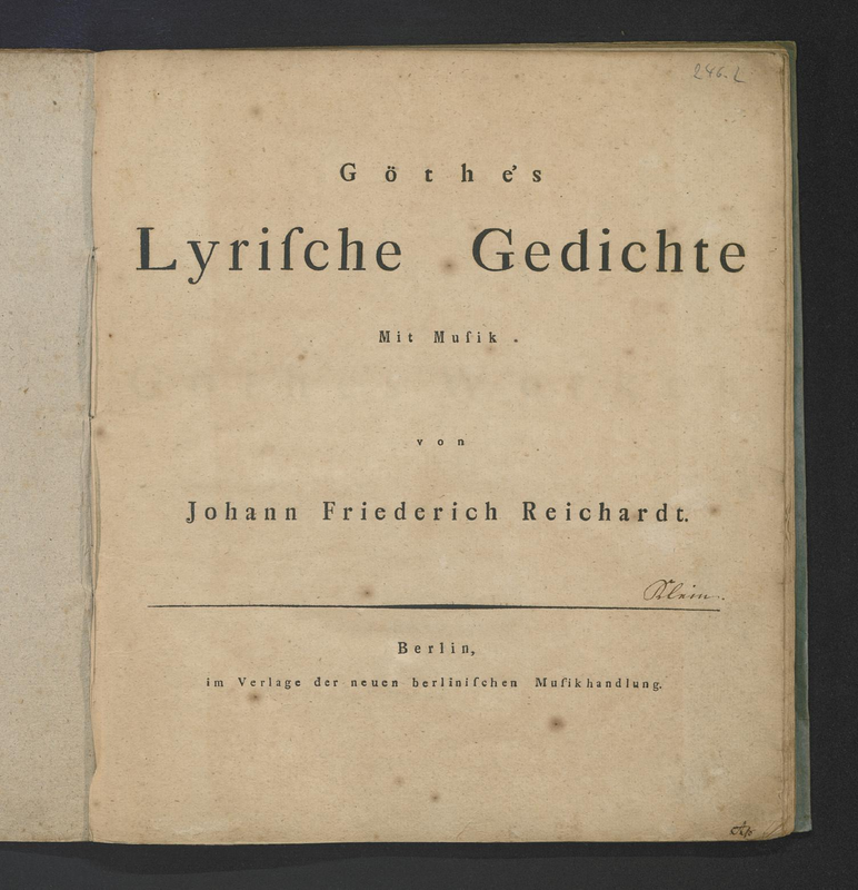 | Work Title | Goethe's Lieder, Oden, Balladen und Romanzen |