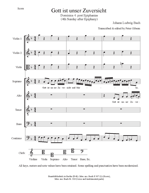 | Alternative. Title | Dominica 4. post Epiphanias Gott ist unser Zuversicht p. à 4 Voci. 2 Violini Viola e Continuo di J. L. Bach.; J.J. Do[min]ica 4. post Epiph. à 4 Voci, 2 Violini Viola e Cont. |