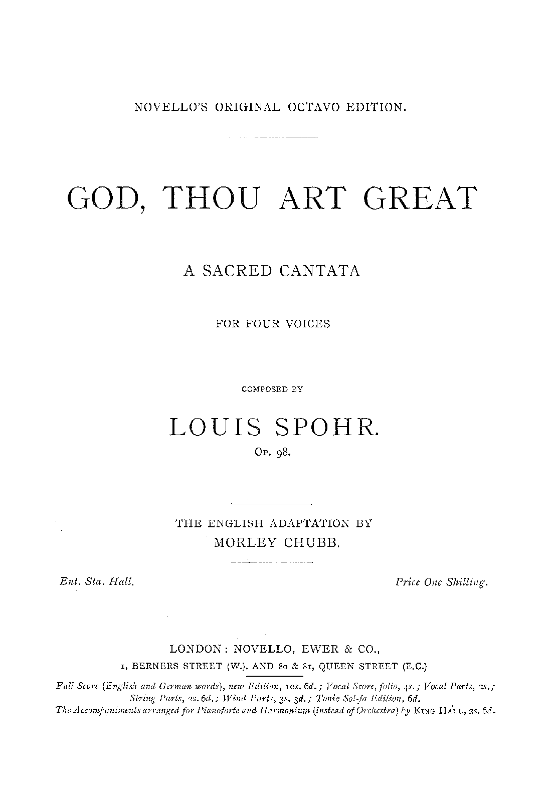 | Alternative. Title | God, Thou Art Great ; A Sacred Cantata for Four Voices |