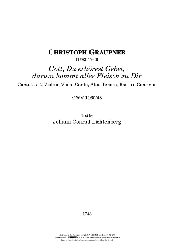 | Opus/Catalogue NumberOp./Cat. No. | GWV 1160/43 |
