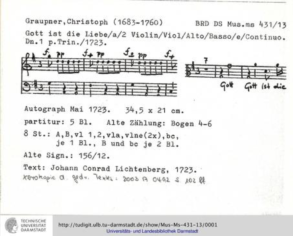 | Opus/Catalogue NumberOp./Cat. No. | GWV 1142/23 |