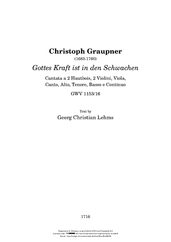 | Opus/Catalogue NumberOp./Cat. No. | GWV 1153/16 |