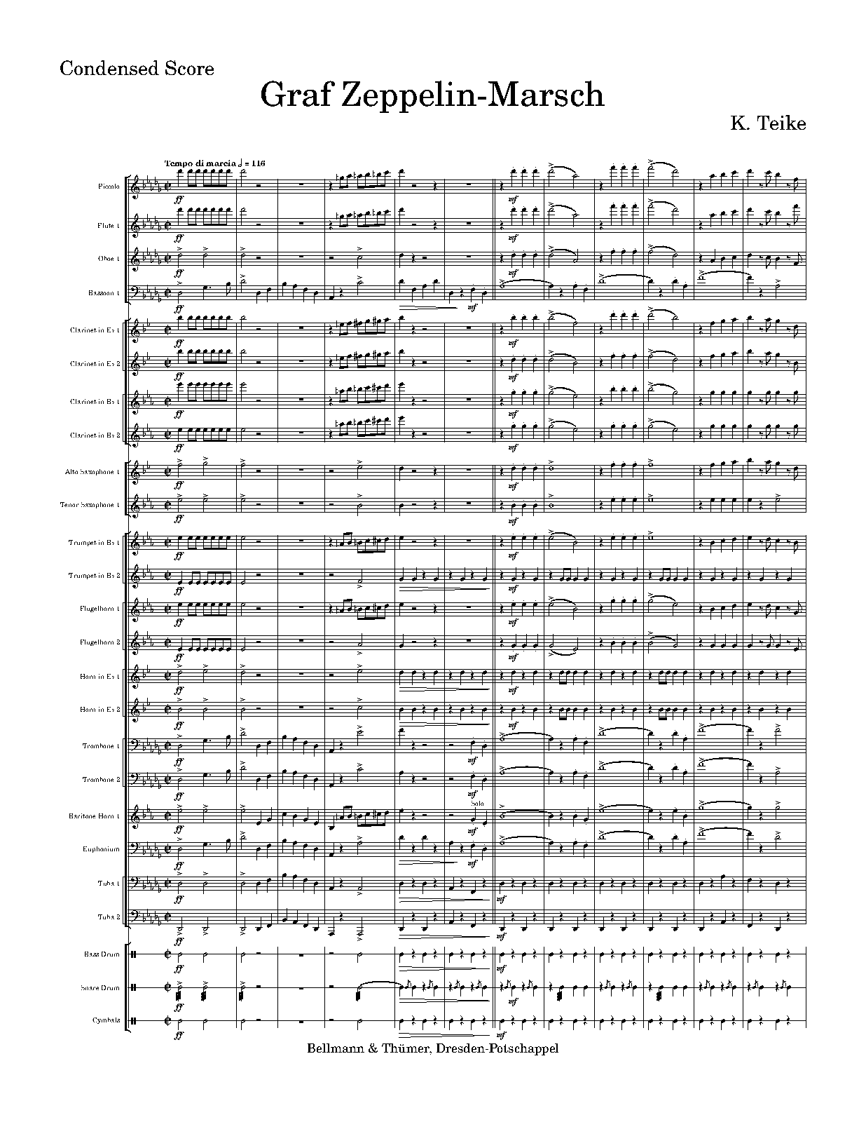 ⇒ 22 more: Oboe • Piccolo Clarinet (E♭) • Clarinet 1 (B♭) • Clarinet 2/3 (B♭) • Bassoon • Soprano Saxophone (B♭) • Alto Saxophone (E♭) • Tenor Saxophone (B♭) • Baritone Saxophone (E♭) • Horn 1/2 (E♭) • Horn 3/4 (E♭) • Solo Cornet (B♭) • Cornet 1 (B♭) • Cornet 2/3 (B♭) • Tenor Trombone 1/2 (B♭) • Trombone 1/2 • Trombone 3 • Baritone (Treble Clef, B♭) • Baritone (Bass Clef, C) • Basses (Tubas) (B♭) • Basses (Tubas) (C) • Drums