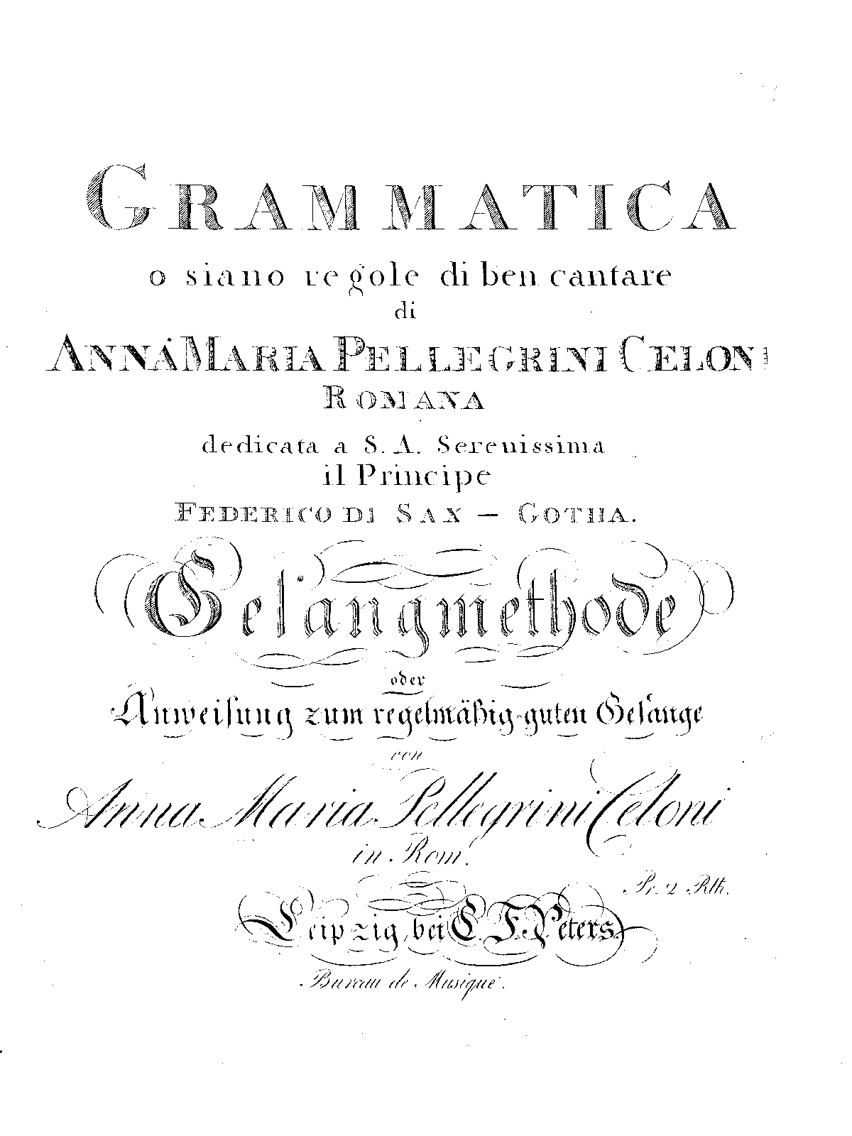 | Alternative. Title | Gesangmethode, oder Anweisung zum regelmässig guten Gesange |