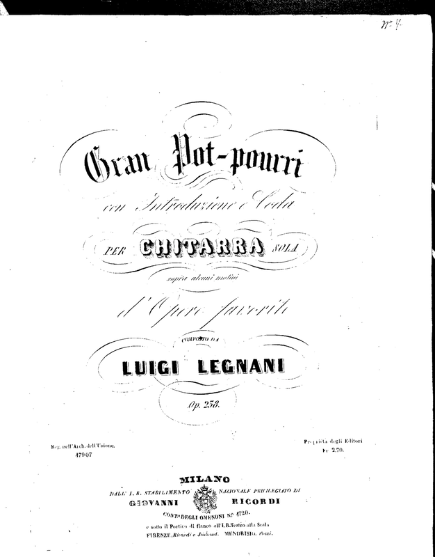 | Work Title | Gran Pot-pourri con Introduzione e Coda per Chitarra sola sopra alcuni motivi d'opere favorite |