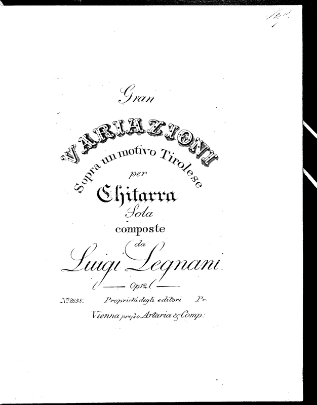 | Work Title | Gran variazioni sopra un motivo tirolese per chitarra solo |