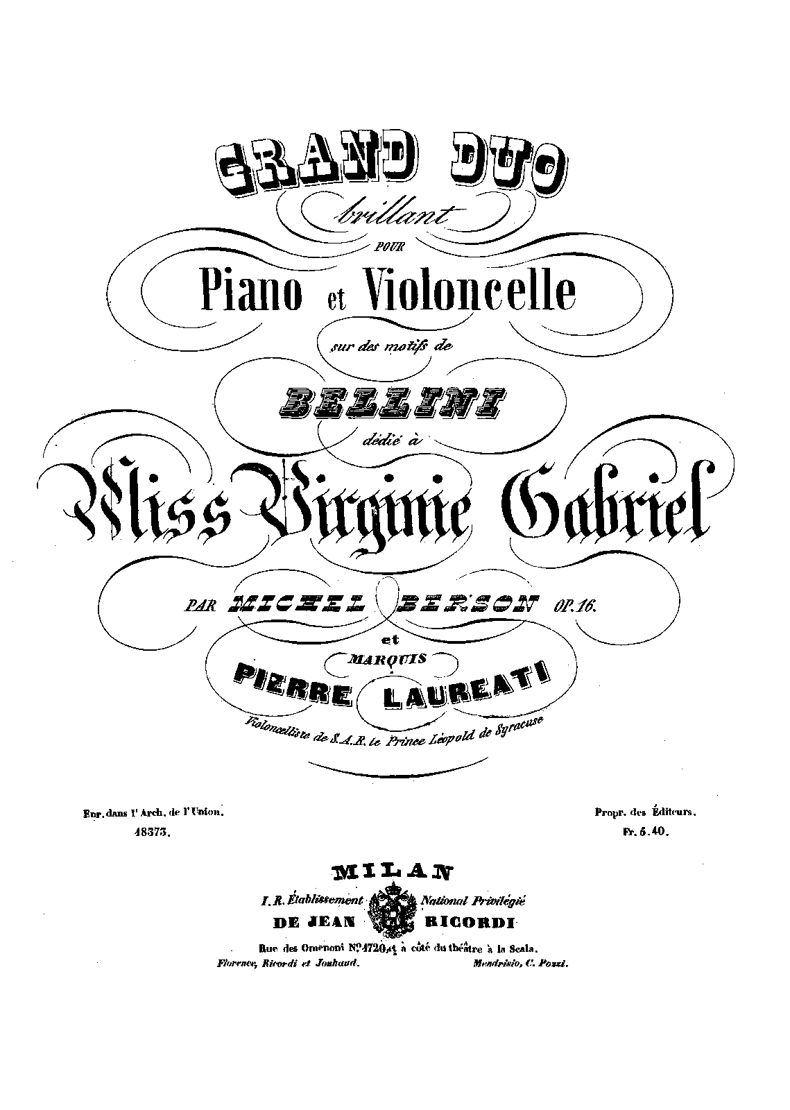 Grand Duo Brillant pour Piano et Violoncelle sur des motifs de Bellini, Op.16