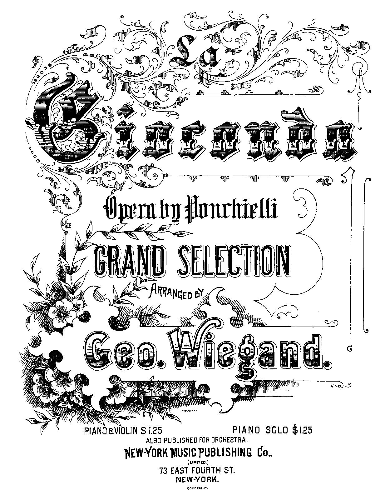 | Work Title | Grand Selection from 'La Gioconda' |