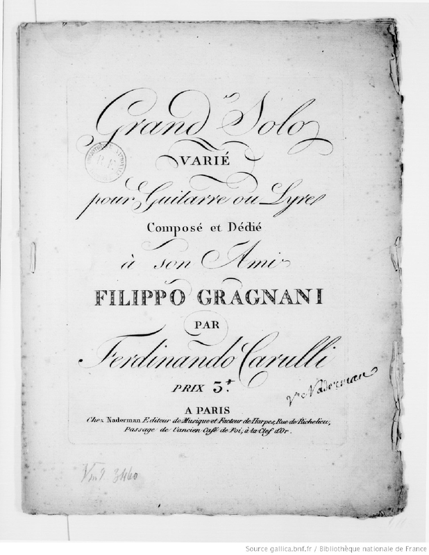 | Alternative. Title | Grand Solo varié pour Guitare ou Lyre composé et dédié á son Ami Fillipo Gragnani |