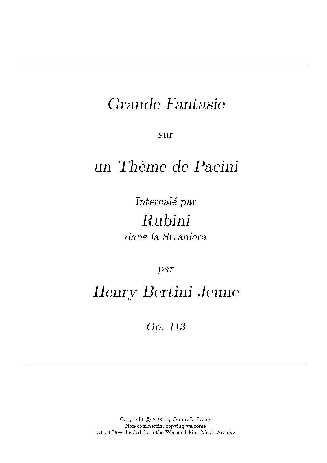 | Alternative. Title | Grande Fantaisie sur un Thème de Pacini intercalé par Rubini dans la Straniera |
