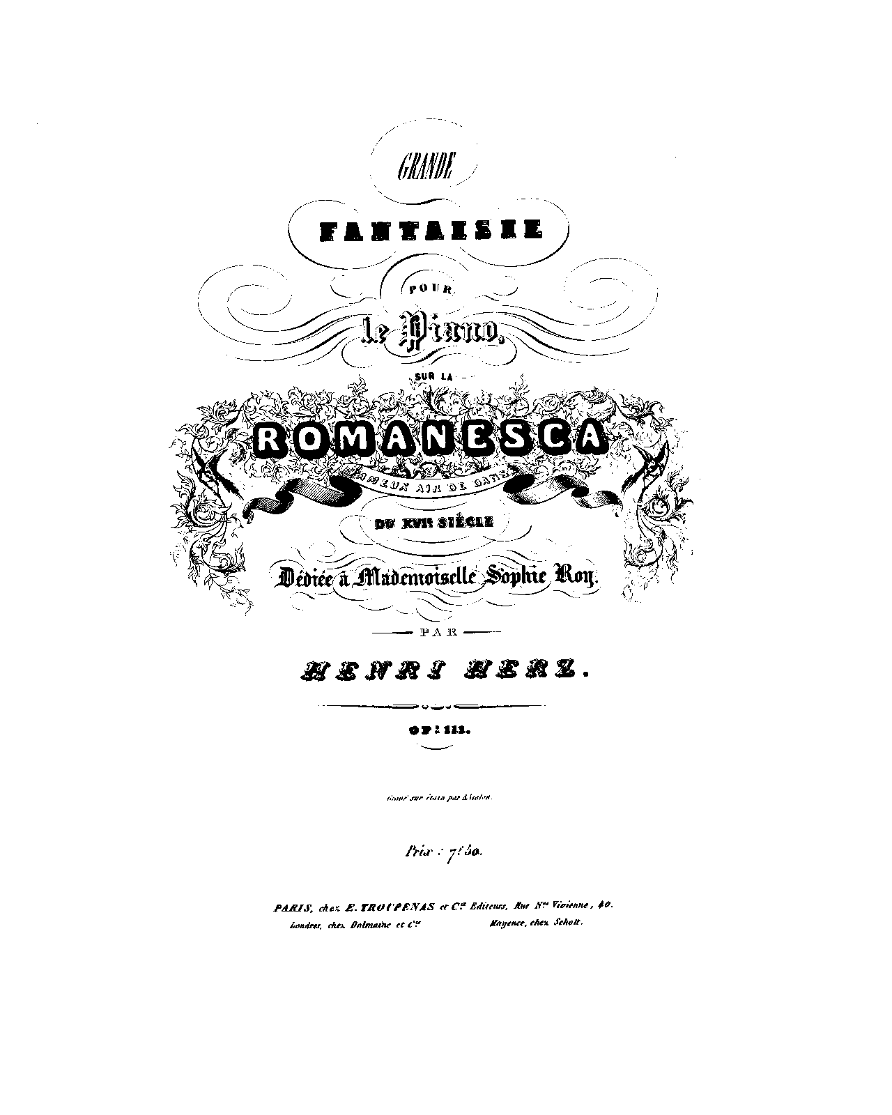 | Work Title | Grande fantaisie sur La romanesca, fameux air de danse du 16. siècle |