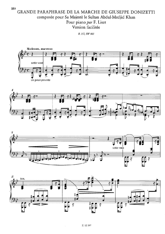 • Composed for solo piano, 1847 (= 1st version, S.403), based on the Grande marche militaire by Giuseppe Donizetti