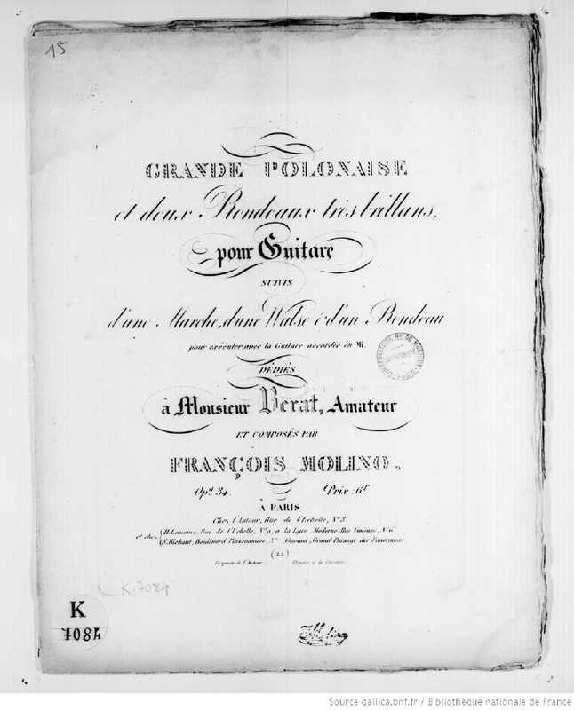 Grande polonaise et deux rondeaux très brillans, pour guitare suivis d'une marche, d'une walse et d'un rondeau.