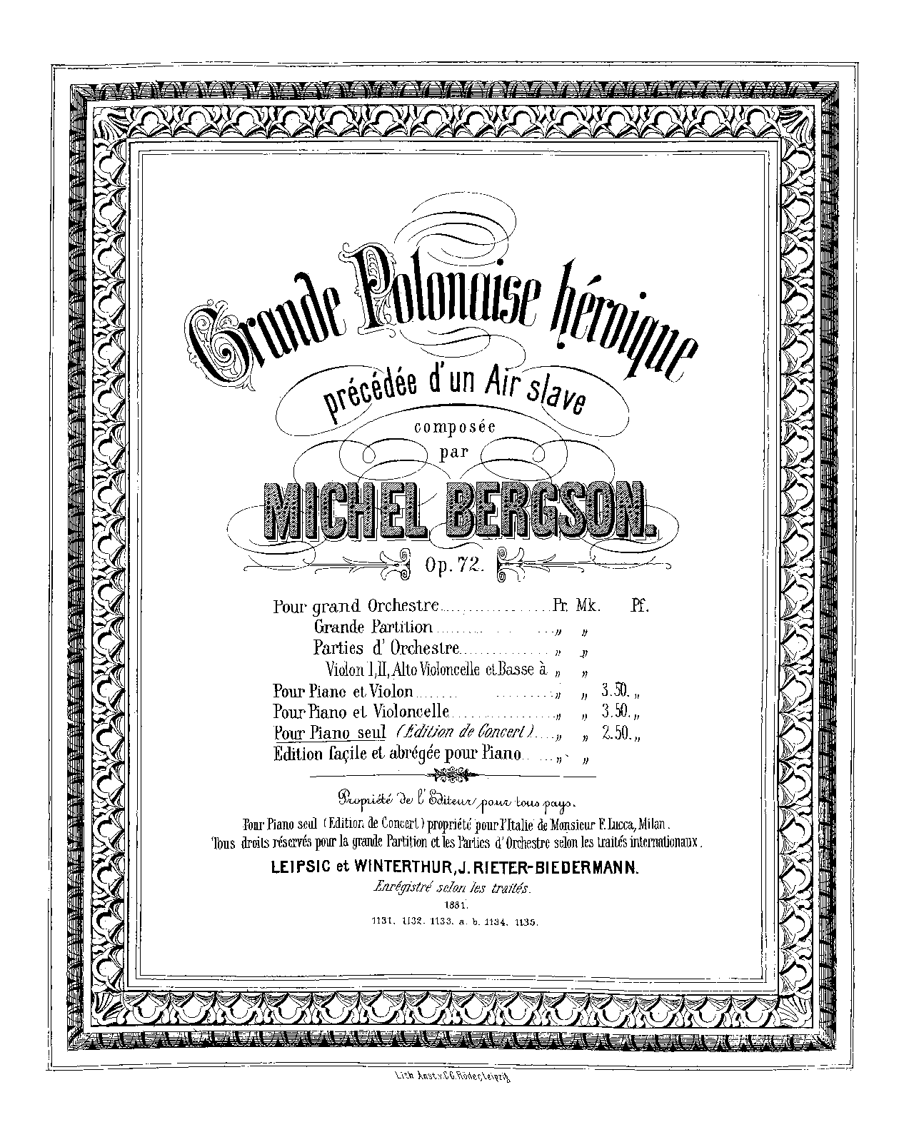 | First Publication | 1881 – Leipzig/Winterthur: J. Rieter-Biedermann |