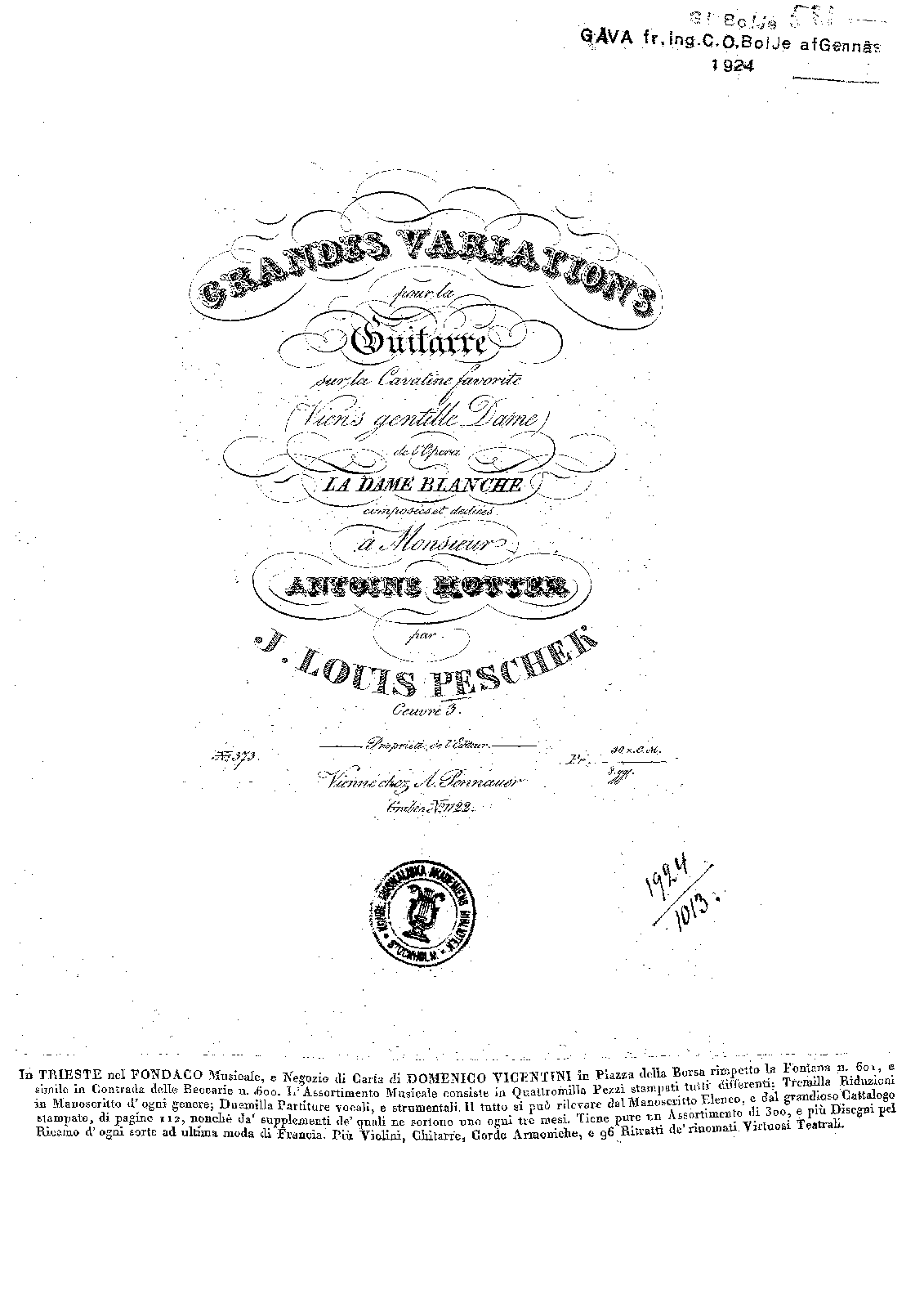 | Alternative. Title | Grandes Variations pour la Guitare sur la Cavatine favorite (Viens gentile Dame) de l'opera La Dame Blanche |