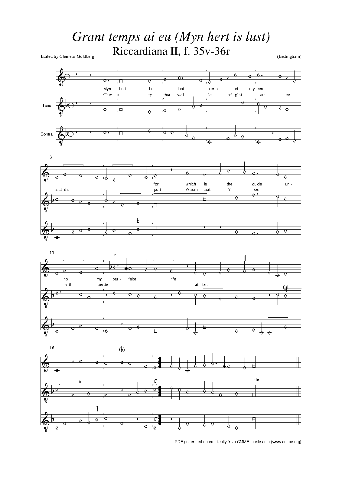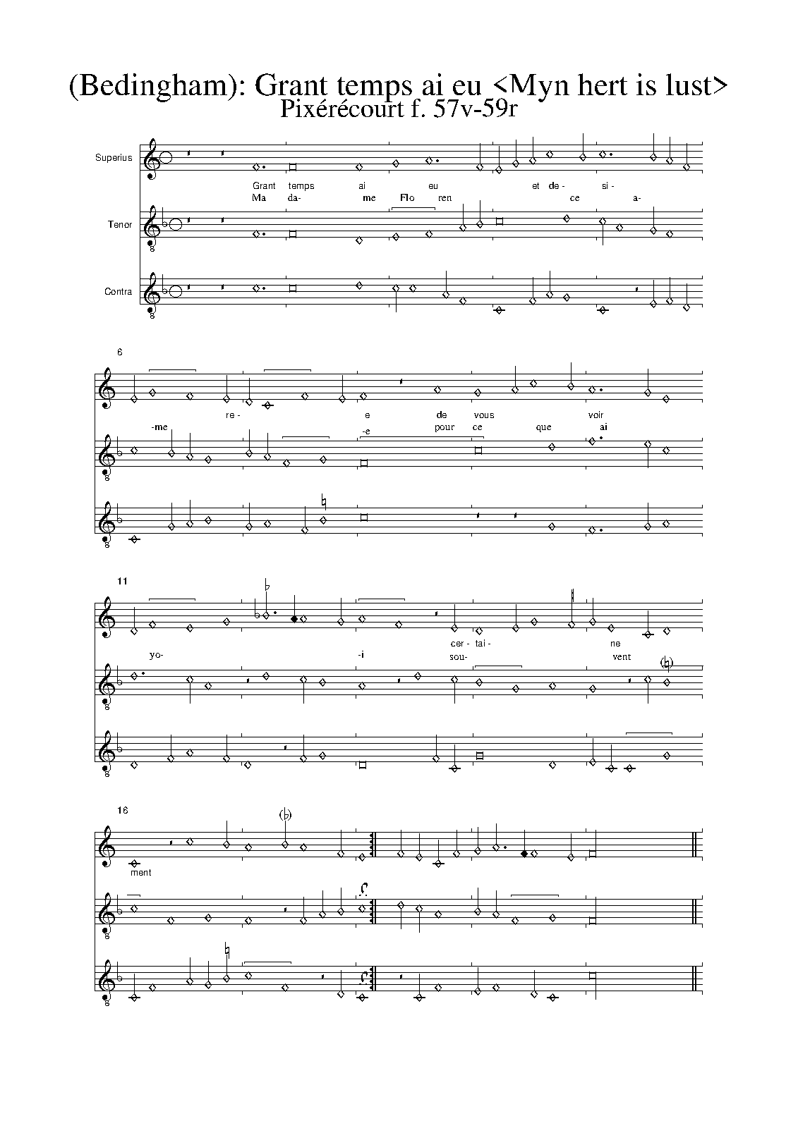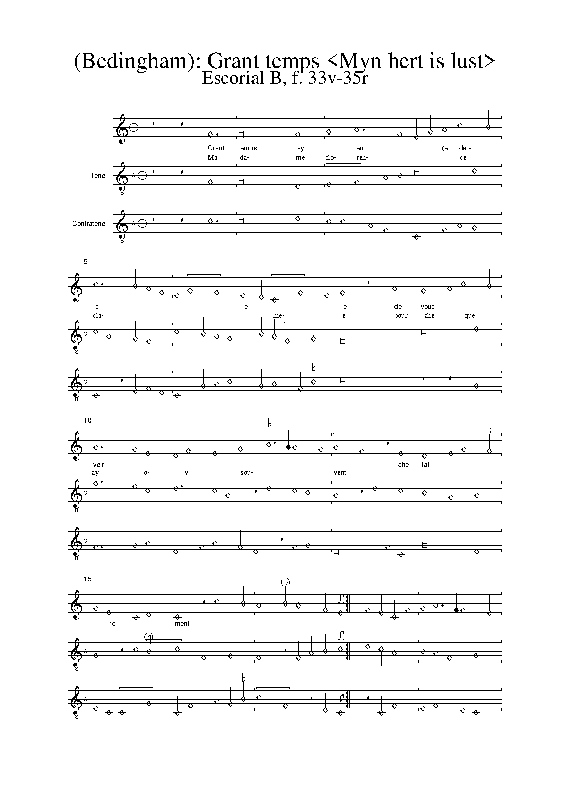 | Alternative. Title | Grant temps ai eu et desire / Myn hert is lust [contrafacta versions] |