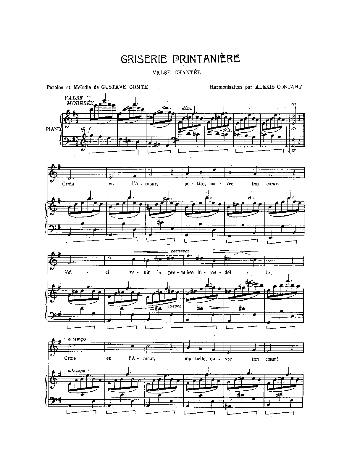 Melody by Gustave Comte, harmonisation by Alexis Contant.