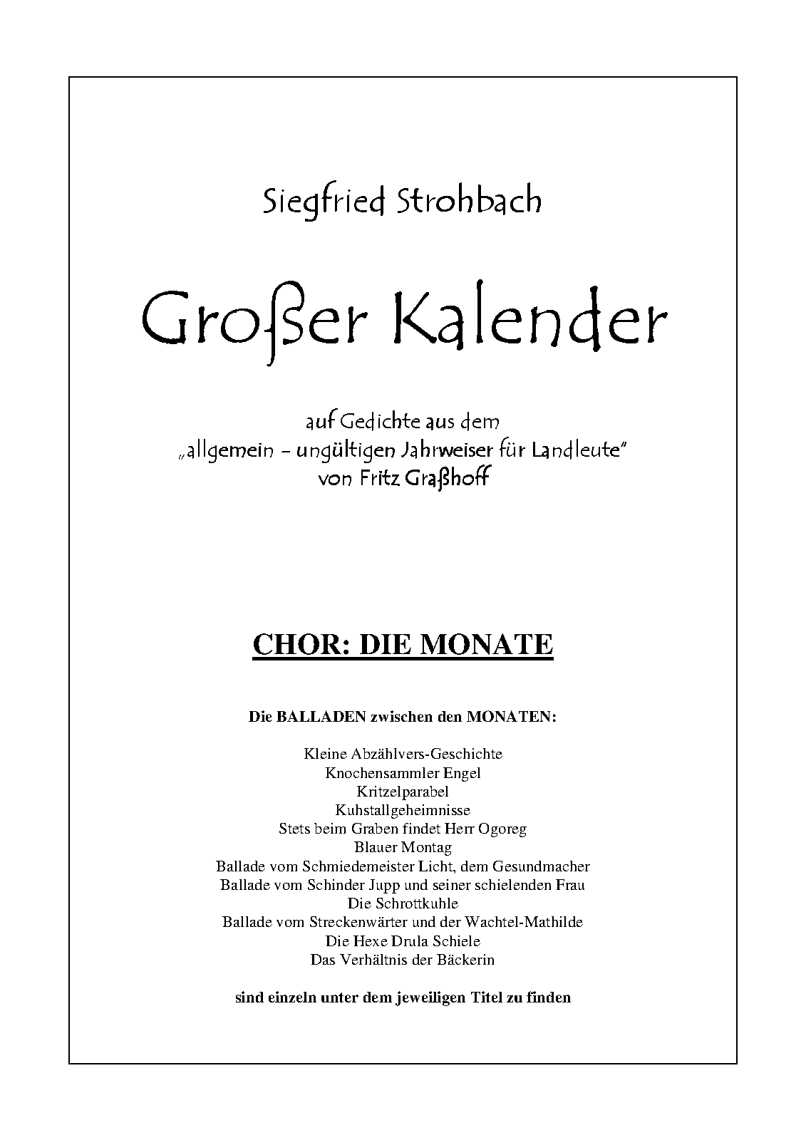 | Extra Information | The revised version of Großer Kalender contains only the twelve months. The twelve ballads, which are sung between the months can be found under their respective months above |