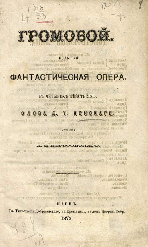 | Librettist | Dmitry Lensky (1805-1860)