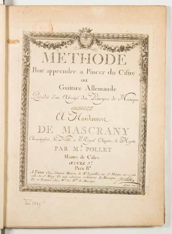 | Alternative. Title | Méthode pour apprendre à pincer du Cistre, ou Guitare Allemande, précédée d'un Abrégé des principes de musique |