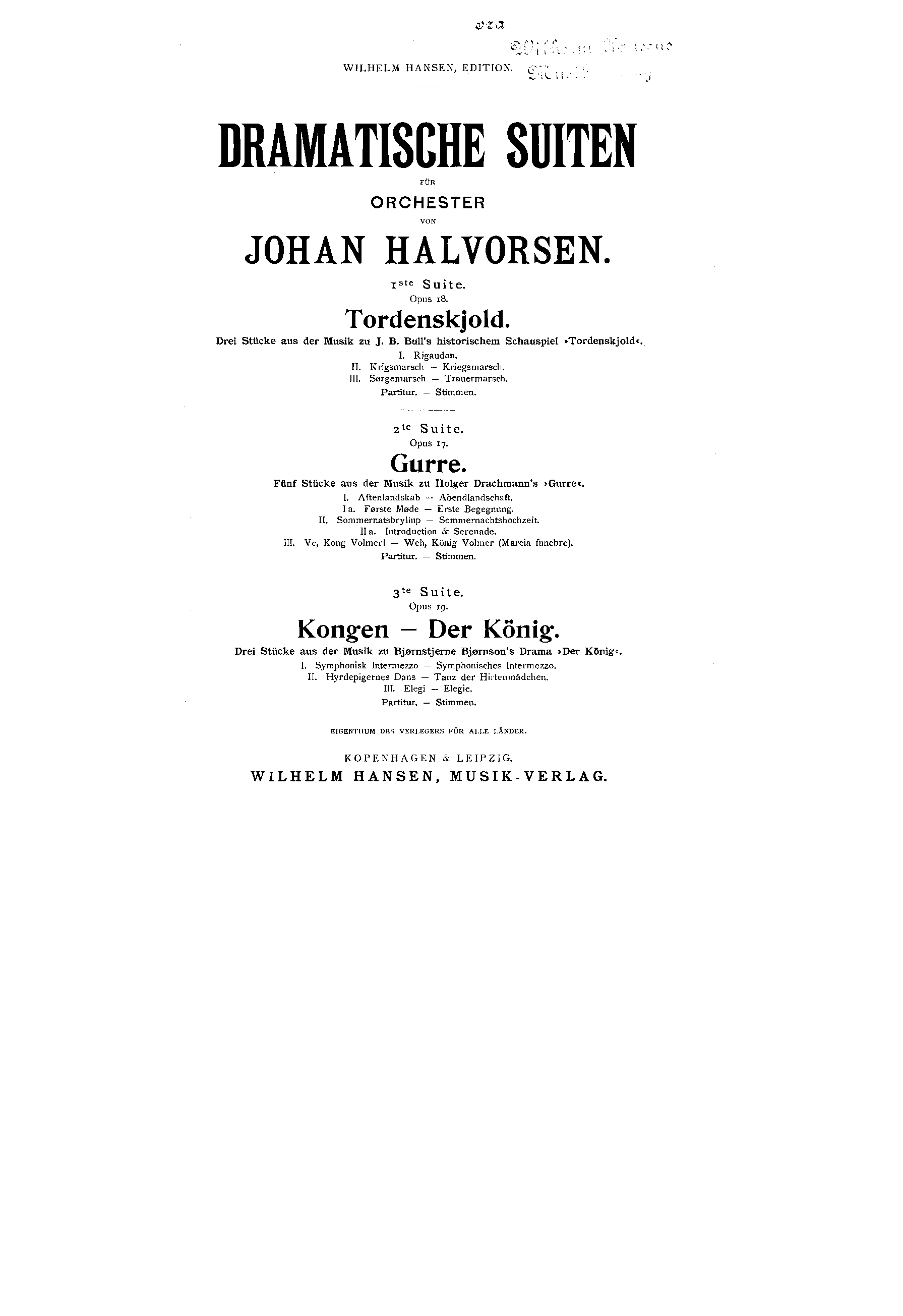 | Alternative. Title | Gurre. Funf Stücke aus der Musik zu Holger Drachmann's Gurre |