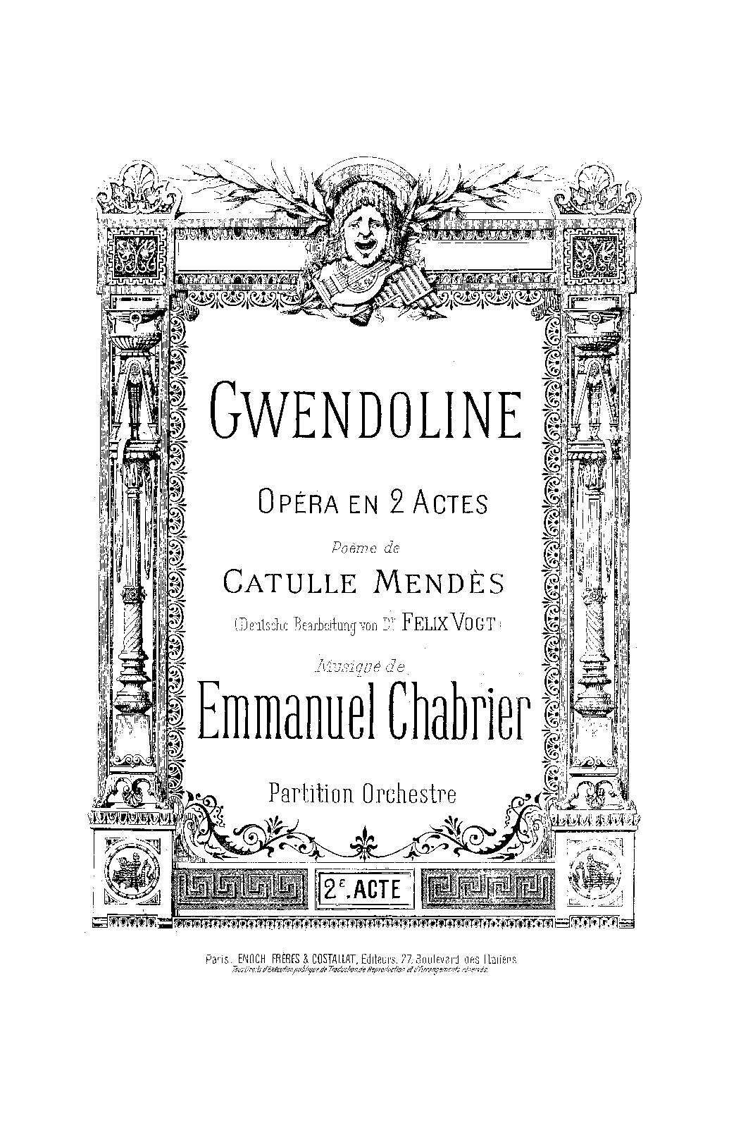 | Name Translations | Gwendoline (Chabrier); エマニュエル・シャブリエ 歌劇『グヴェンドリーヌ』序曲; 格温德琳 |