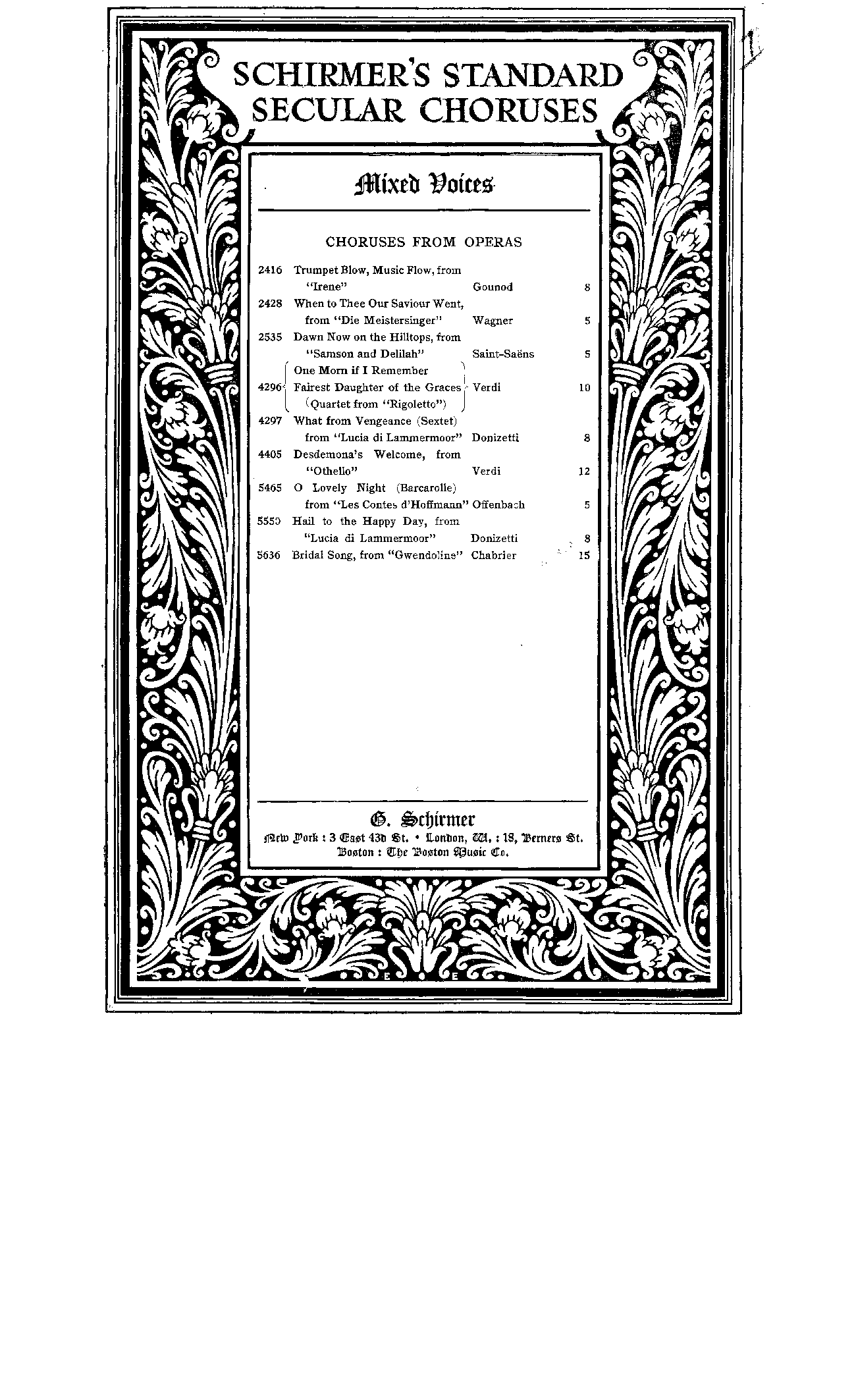 | Genre Categories | Operas; Theatrical Works; For voices, mixed chorus, orchestra; |