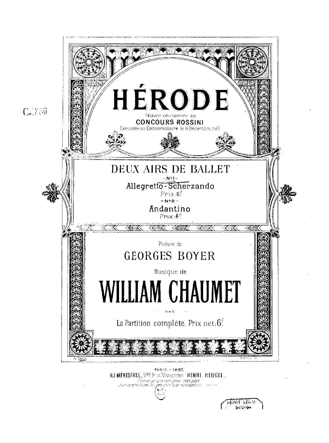 | First Performance. | 6 December 1885, Paris: Conservatoire |