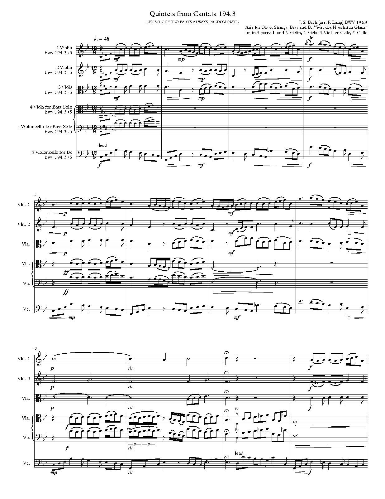 For Quintets: Oboe ad lib. and Strings (Lang)