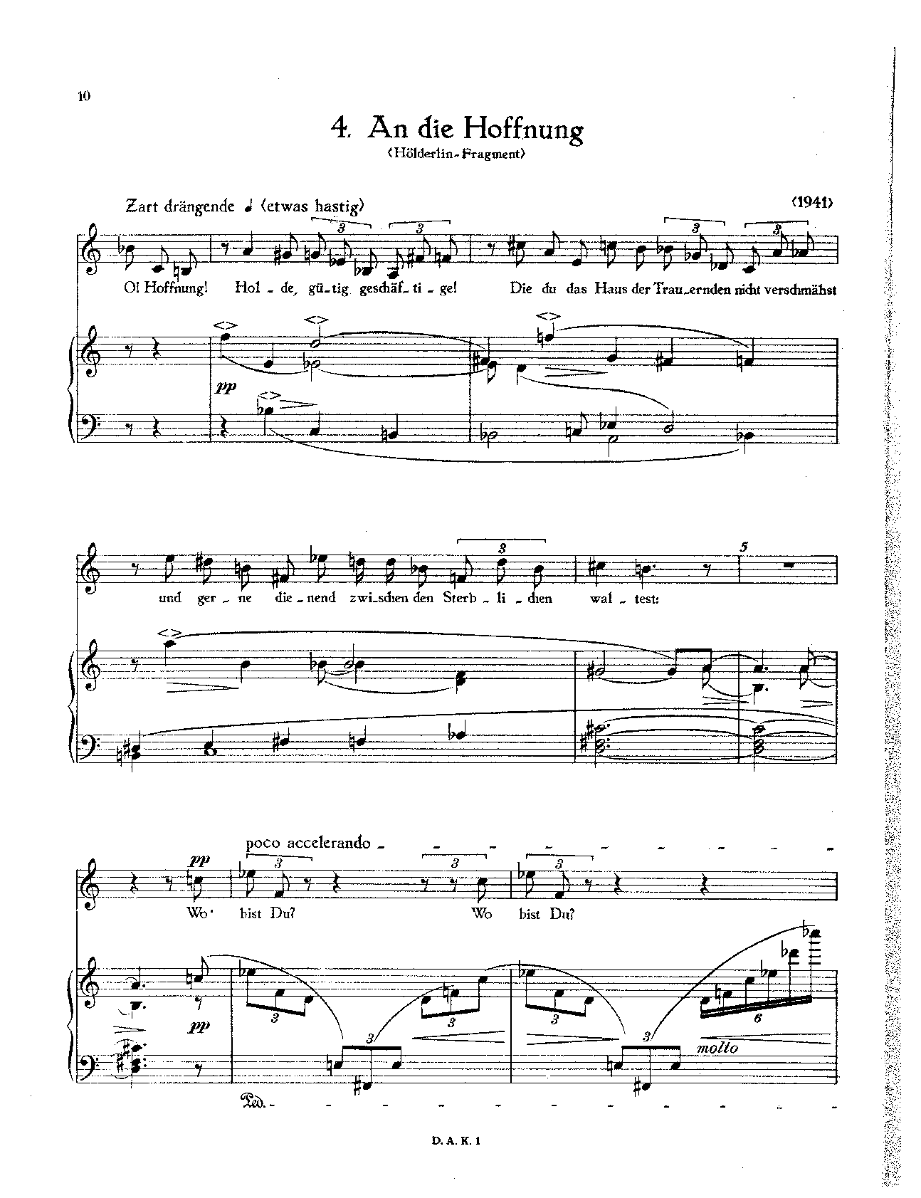 ⇒ 6 more: 1. An die Hoffnung • 2. Andenken • 3. Elegie 1943 • 4. Die Heimat • 5. An eine Stadt • 6. Erinnerung