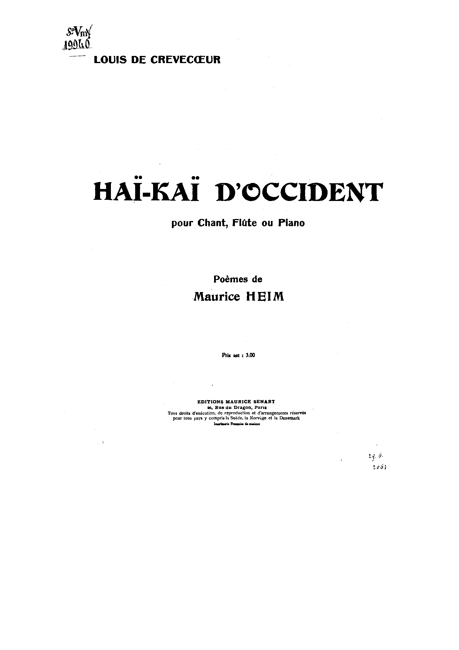 | Work Title | Haï-kaï d'Occident |