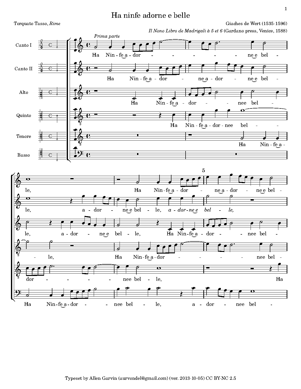 | Opus/Catalogue NumberOp./Cat. No. | II Nono libro de madrigali a cinque e sei voci 1588 |