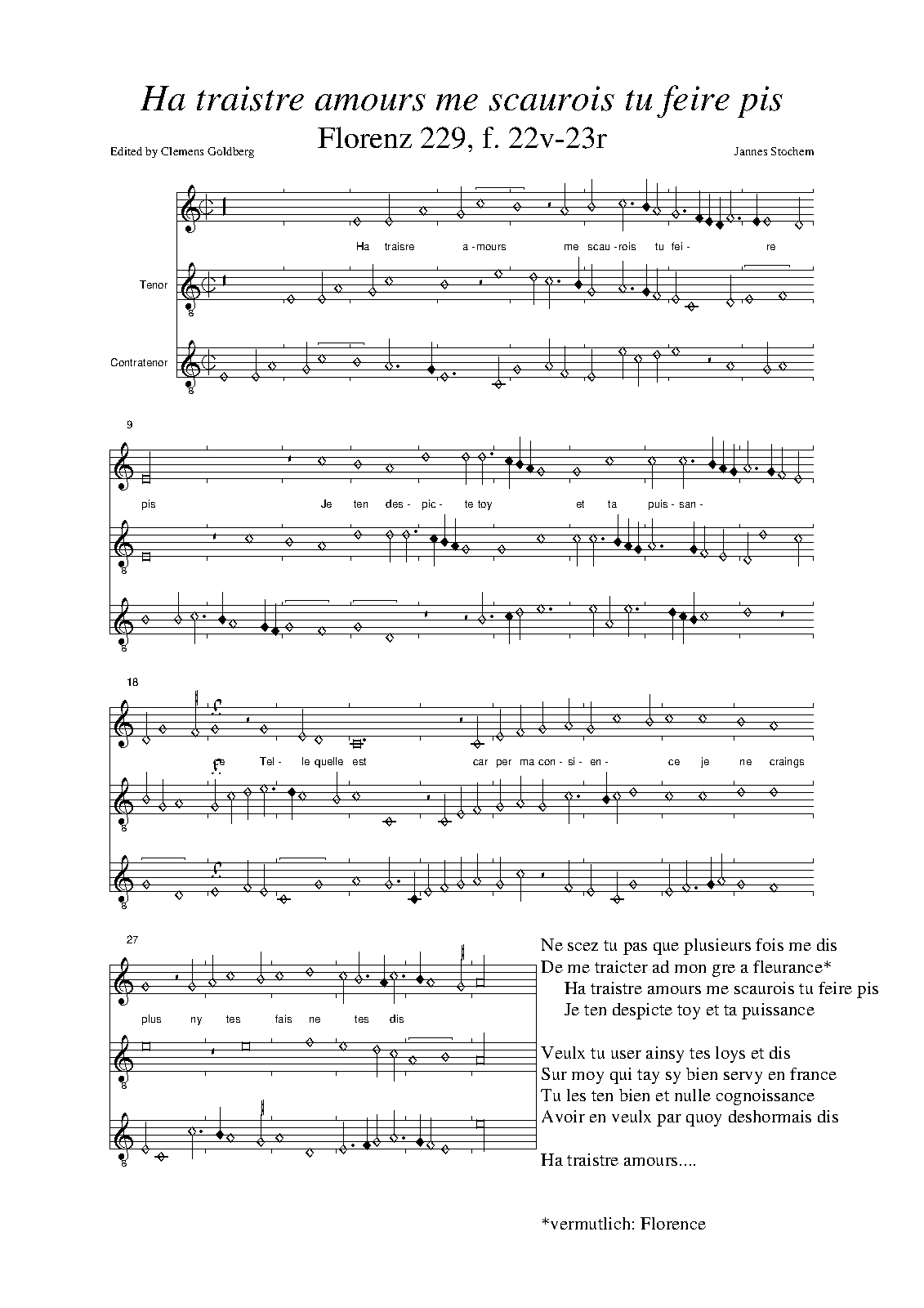 | Alternative. Title | Ha traistre amours me scaurois tu feire pis |