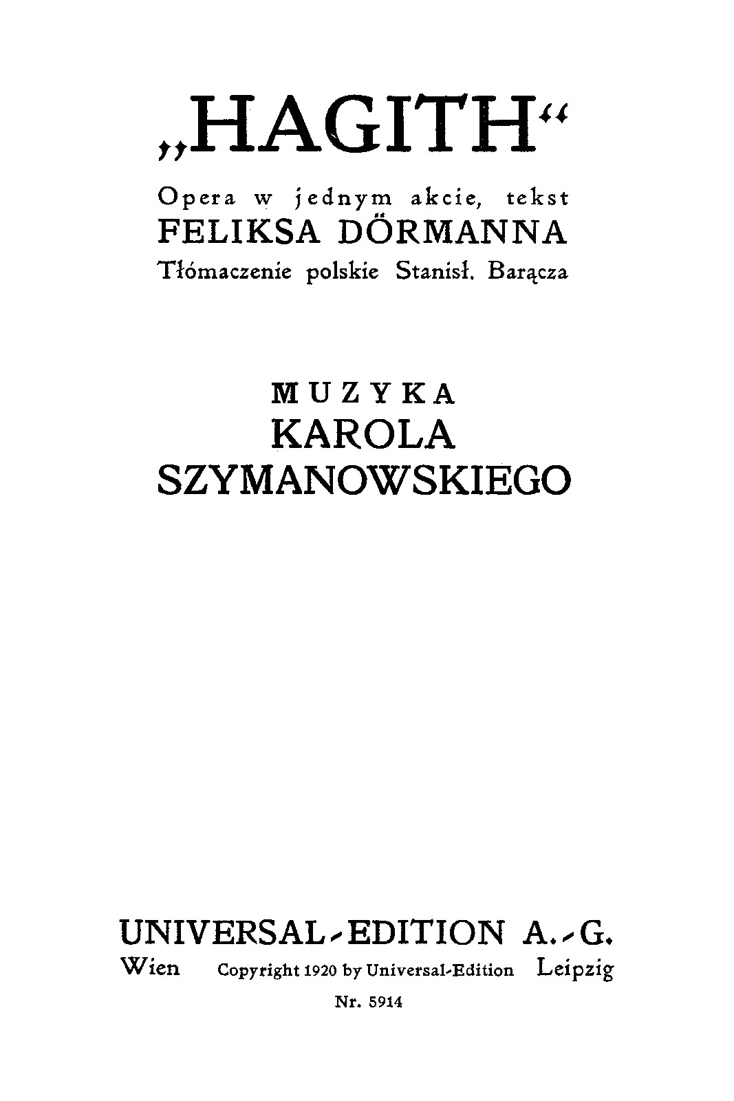 | First Performance. | 1922-05-13 - Warsaw, Great Theatre: Emil Młynarski (conductor) |