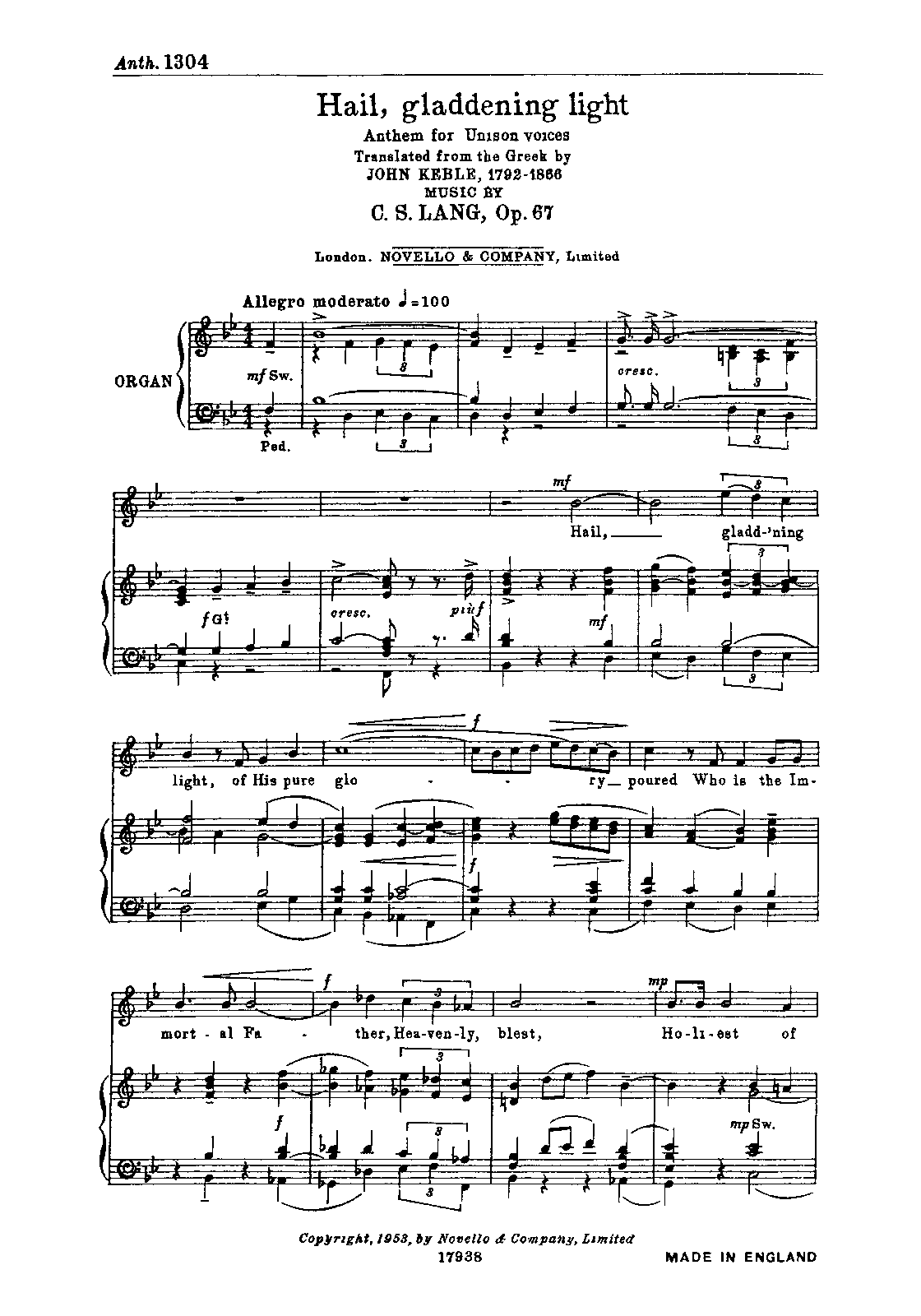 | Genre Categories | Anthems; Religious works; For unison chorus, organ; |