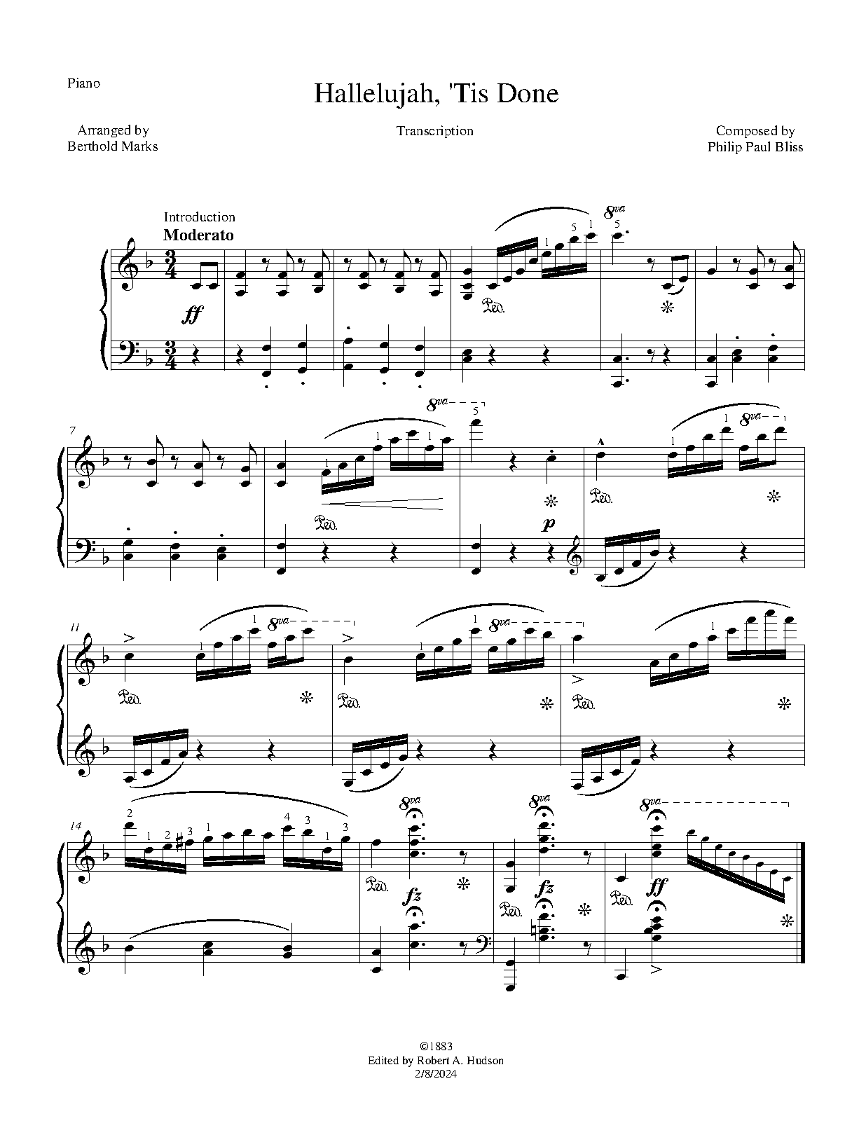 | Work Title | Hallelujah, 'Tis Done |